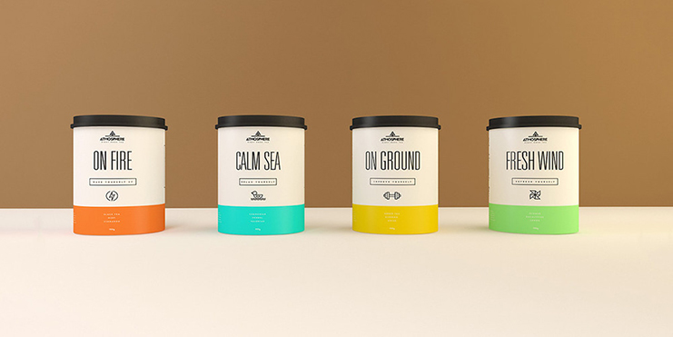 一種情緒,一種茶。氛圍是一個茶品牌,這是一個新的概念,以表。每一個四個元素,該包包含一個混合的草藥,為每一個情緒提供好處。Paloma馬丁斯設計的品牌和包裝,使用圖標和色彩協調,以保持品牌的簡單和方便消費者找到最適合他們的需要。